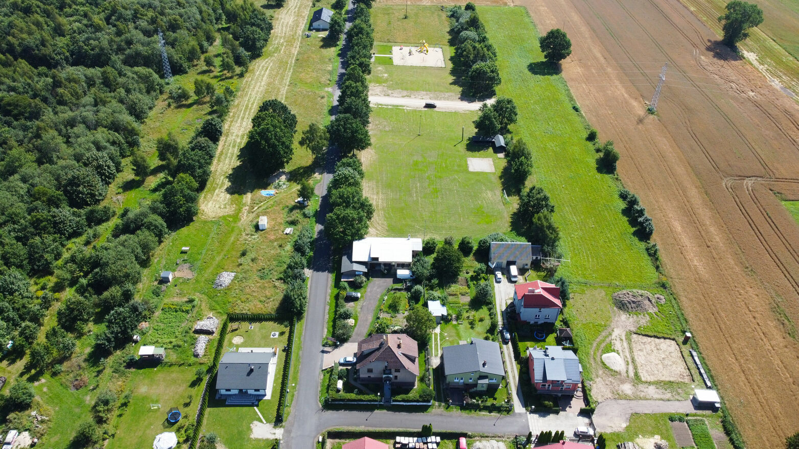 Największą zaletą nieruchomości jest ich lokalizacja. Działki znajdują się w centrum wsi. Teren jest dobrze skomunikowany z pobliskimi miejscowościami, a także z głównymi drogami i trasami.